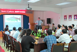 On October 20th~22th, 2010, Professor Scott E LaPatra, the director of Research and Development, Clear Springs Foods, Inc., USA, visited SCSFRI for academic exchange.