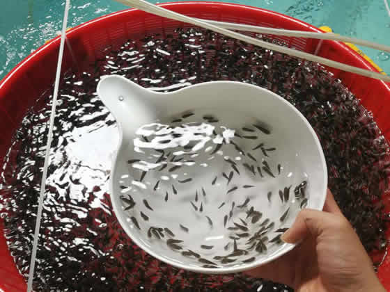 南海所项目组利用已培育的F3代卵形鲳鲹为亲本,运用已建立的亲本选配技术,开展了卵形鲳鲹亲本营养强化和催产,获得并推广优质受精卵12.6kg。针对卵形鲳鲹苗种培育关键环节,开展了卵形鲳鲹优质鱼卵筛选、培育水体理化因子控制、饵料营养强化以及苗种培育流程优化,建立了卵形鲳鲹工厂化苗种培育技术;开展了卵形鲳鲹工厂化苗种培育工作,?.7kg受精卵放?10m3水体进行孵化,获得初孵仔?71万尾,平均孵化率?0.3%;经?3天培育,获得卵形鲳鲹苗种117万余尾,苗种成活率为43.2%,苗种体长为1.5-3.2cm,培育苗种平均密度为5571?m3?/p>