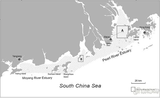 中华白海豚(Sousa chinensis,通用名为印度-太平洋驼背豚)是国际自然保护联盟(IUCN)濒危物种红色名录中的易危(Vulnerable)物种,也是我国国家一级保护动物。南海所研究团队对珠江口以西的漠阳江口海域进行了长时期海上考察,证实了这个海域有常年定居性的中华白海豚分布并估算其数量约?00多头。利用个体照片识别(Photo-ID)技术、并通过与珠江口个体数据库进行对比配对分析,发现漠阳江口与珠江口海域的中华白海豚交流频繁,证实二者同属一个种群(命名为“珠江口-漠阳江口种群”)。该研究还确定了种群的分布范围为东至香港海域、西至海陵岛海域,并结合之前的研究,评估整个珠江?漠阳江口种群的个体数量为2600头左右?/p>