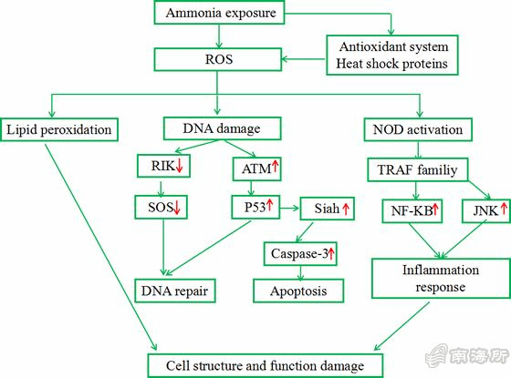 氨氮、亚硝酸是水产养殖环境中最常见的污染物。养殖水环境中氨氮、亚硝酸偏高会影响水产动物的生长、发育、生理功能以及生存。南海所科研团队从细胞和分子水平上探讨了氨氮、亚硝酸对拟穴青蟹的影响。结果表明,氨氮、亚硝酸引起的氧化应激能够导致机体组织和DNA损伤,大量与免疫和DNA损伤修复相关的关键基因参与了青蟹的氧化应激反应,该研究结果为深入开展青蟹抗逆研究奠定了理论基础?/p>