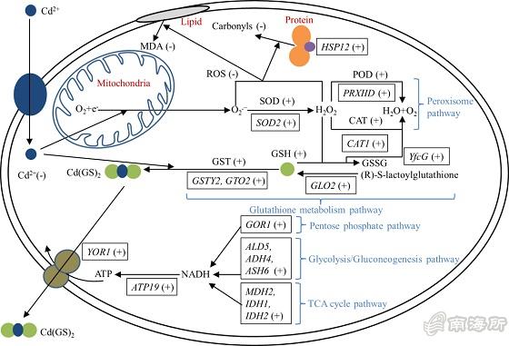 活性微生物具有在水产品酶解液、发酵鱼露等液态水产制品中脱除重金属的应用潜力。南海所水产品质量安全研究团队对前期筛选到的多抗性酵母菌-库德毕赤酵母(Pichia kudriavzevii A16)的重金属积累特性以及在复杂环境下的重金属脱除能力进行了系统地研究。研究发现,该酵母对于低?.04 mmol/L的镉?.1 mmol/L锌的脱除率均超过95%,在高盐、强酸、其他高浓度重金属离子干扰条件下具有稳定的重金属脱除能力。首次发现高盐和强酸胁迫能够显著提高库德毕赤酵母的镉抗性,并利用转录组学、蛋白质组学、qRT-PCR等分子生物学技术联合流式细胞术、氧化胁迫分析、重金属细胞内外积累等生理生化特征分析深入探讨了菌株的镉抗性提高机制,筛选了菌株与镉吸收和抗性相关的关键代谢途径和基因,揭示了细胞内镉吸收、配合和外排以及抗氧化防御系统对酵母镉抗性的作用。该研究成果为应用活性微生物脱除液态水产制品中的重金属提供重要技术支持?/p>