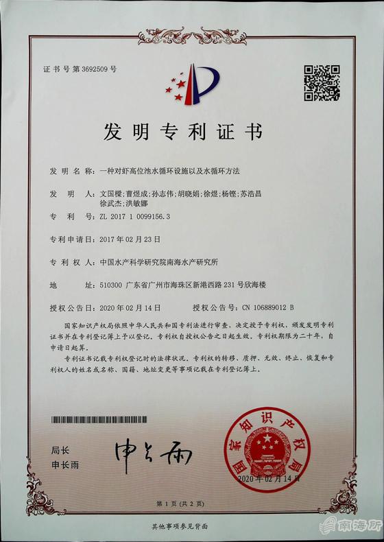 鍗楁捣鎵鈥滀竴绉嶅铏鹃珮浣嶆睜姘村惊鐜鏂戒互鍙婃按寰幆鏂规硶鈥濊幏鍥藉鍙戞槑涓撳埄鎺堟潈