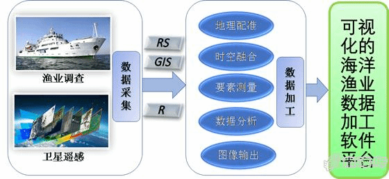 南海所研发的该海洋渔业数据加工和可视化系统,基于RS、GIS系统和R语言,通过数据获取、地理配准、时空融合、数据分析、要素测量和图像输出等,整合不同时期的海量卫星遥感和海洋渔业数据,实现了大面积海域不同时期地理要素的快速测量、渔业资源调查数据的自动化处理、以及海洋渔业和遥感数据自动可视化等。该系统提供从原始数据到可视化的海洋渔业数据加工软件平台,用于展示不同历史时期海域地理、生态环境、渔业资源等要素的时空分布,服务海洋资源数据采集、海岛调查、渔场动态监测、渔情预报等领域,为海洋大数据产品的快速处理和智能应用提供技术支撑?/p>
