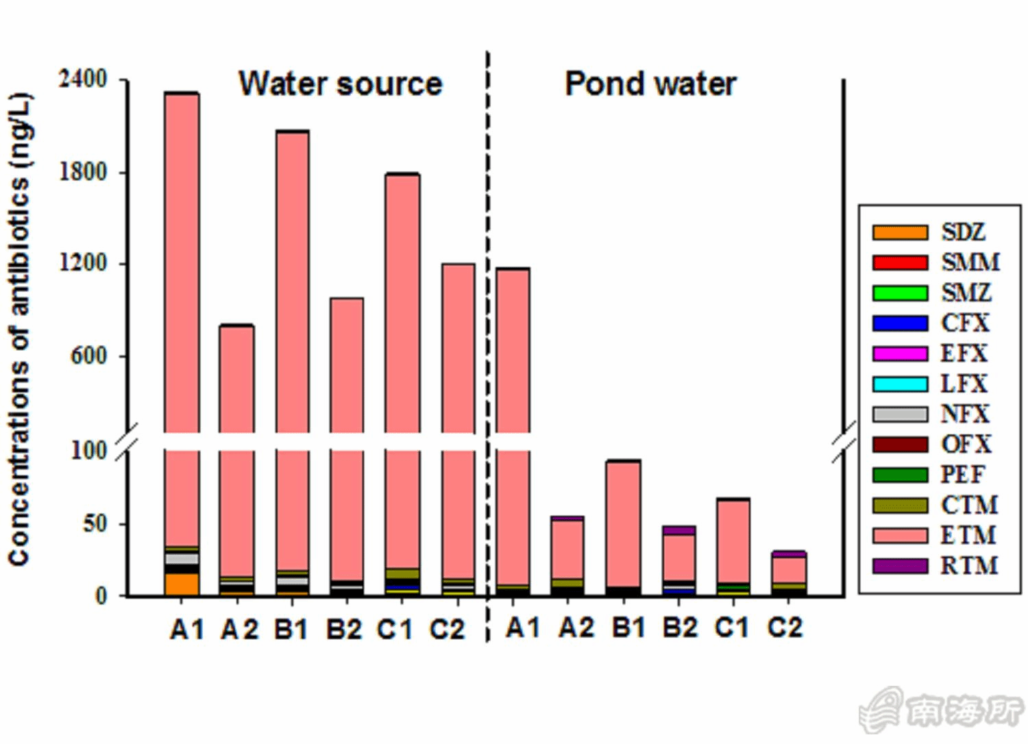 近日,中国水产科学研究院南海水产研究所海水池塘养殖生态环境调控创新团队对海水池塘养殖环境抗生素来源、抗生素抗性菌(ARB)的灭活和抗生素抗性基因(ARGs)的去除研究取得重要进展,相关成果分别以题为“Spatiotemporal variations and source tracking of antibiotics in an ecological aquaculture farm in Southern China”和“Removal of antibiotic resistance genes and inactivation of antibiotic-resistant bacteria by oxidative treatments”发表在国际期刊《Science of the Total Environment》(JCR 1区,IF=6.551)上,两篇论文第1作者分别为苏浩昌和赵晓雨,曹煜成为通讯作者。该研究结果为推动“无抗”健康养殖、科学使用渔用氧化剂防控ARB和ARGs的传播提供了重要参考。上述研究得到中国水产科学研究院科技创新团队项目?020TD54)、国家重点研发计划“蓝色粮仓科技创新”(2019YFD0900402)、国家现代虾蟹产业技术体系(CARS-48)等项目联合资助?/p>