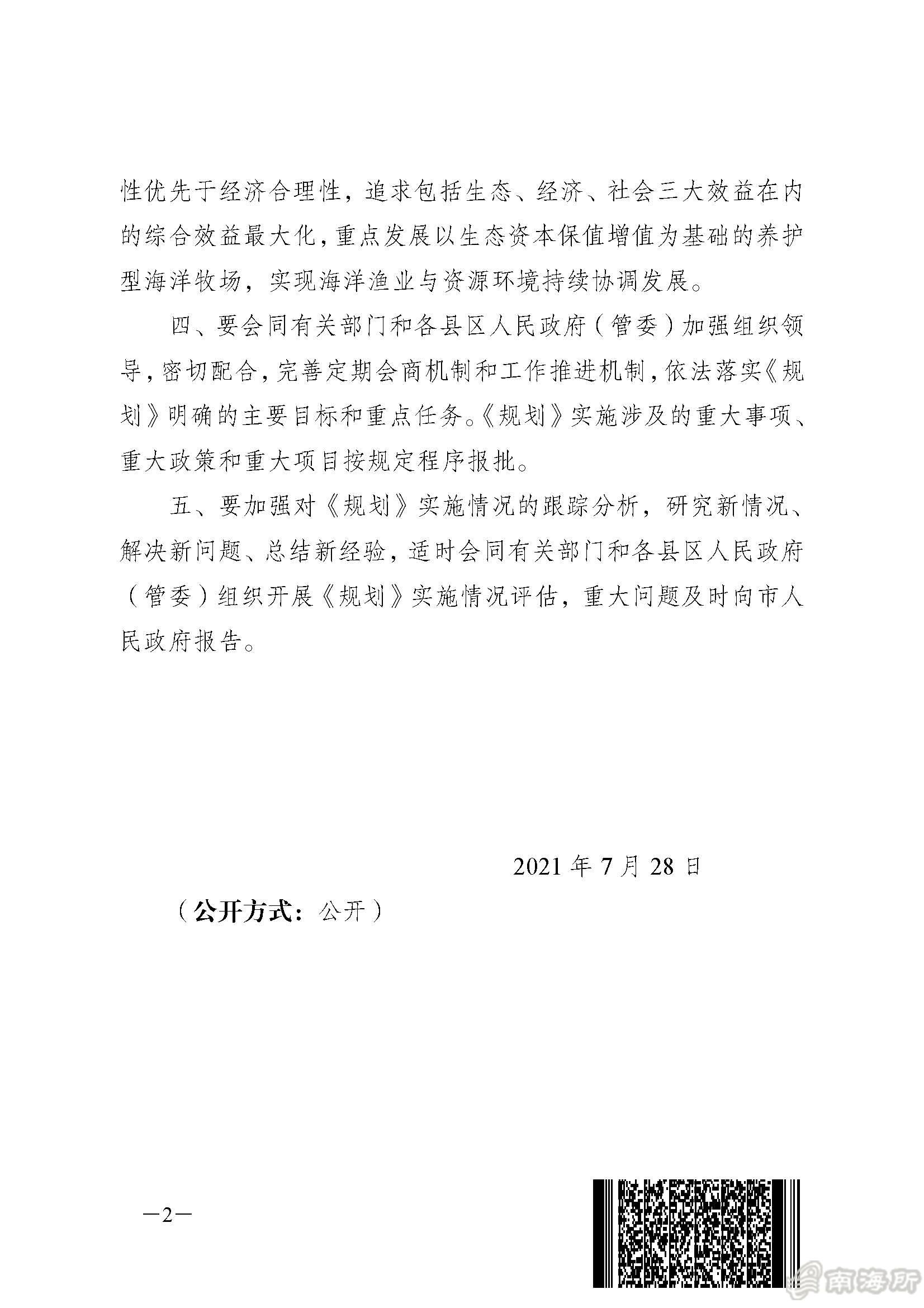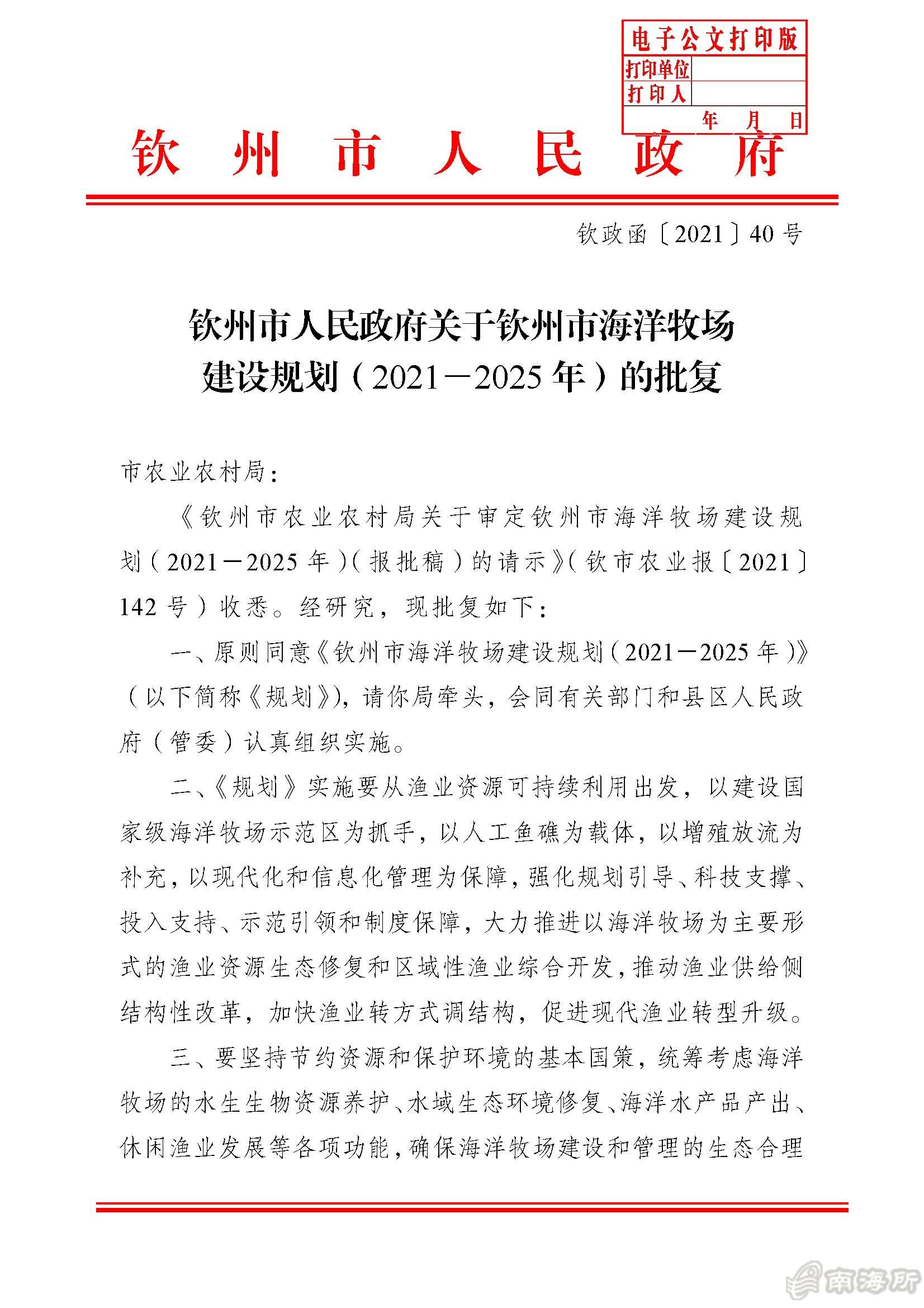 南海所编制的《钦州市海洋牧场建设规划?021?025年)》获得钦州市政府批复