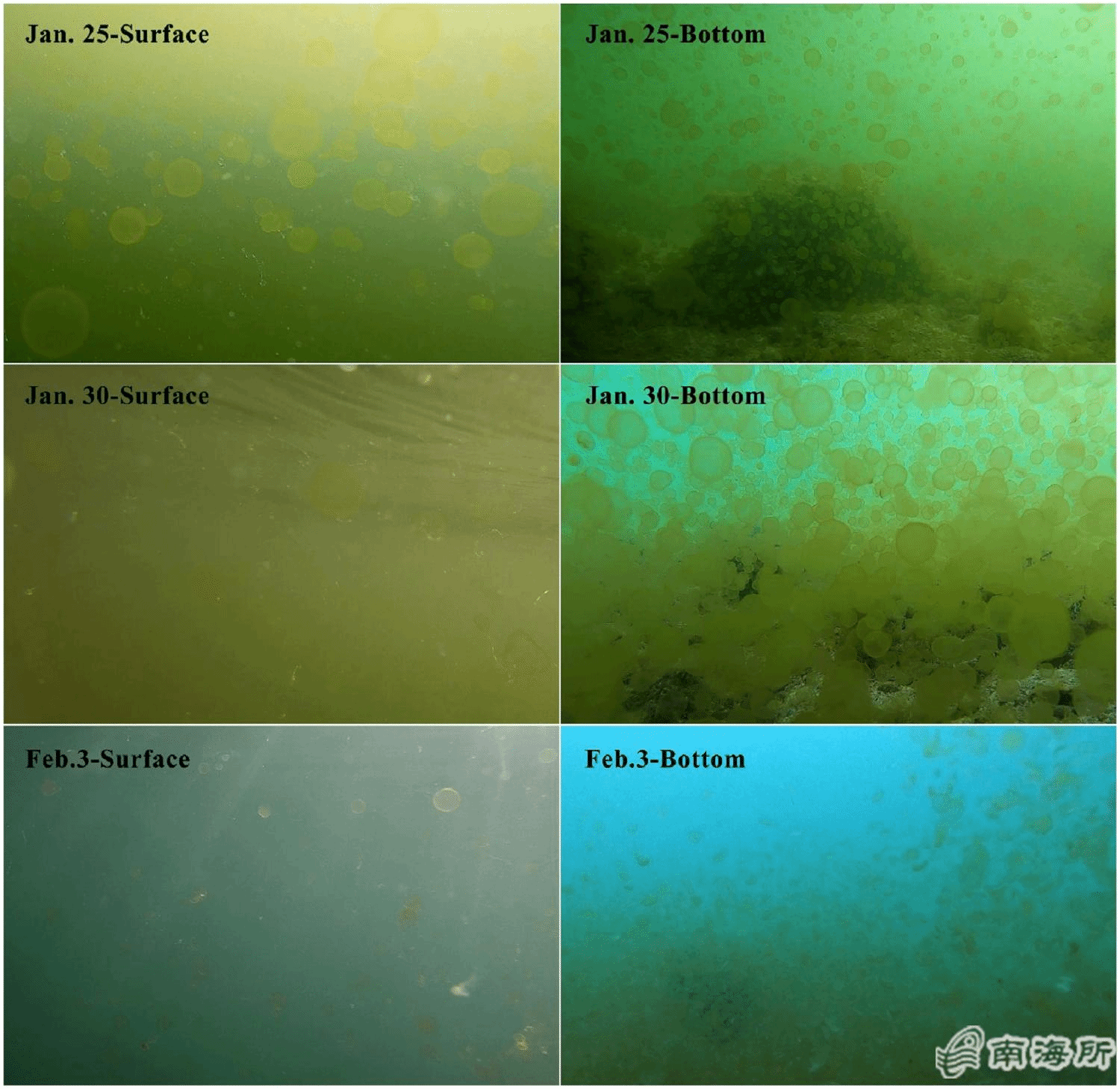 ?/span>1 不同藻华暴发阶段球形棕囊藻囊体的水层分布情况
