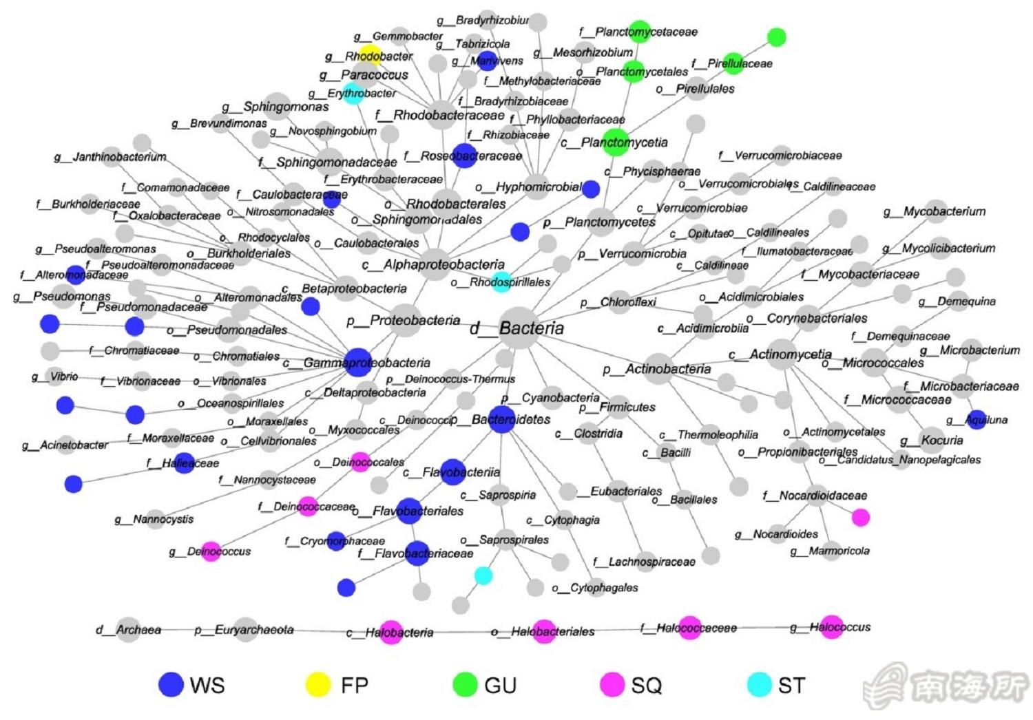 海水罗非鱼精养过程环境菌群在各分类水平上的差异网络分?/span>
