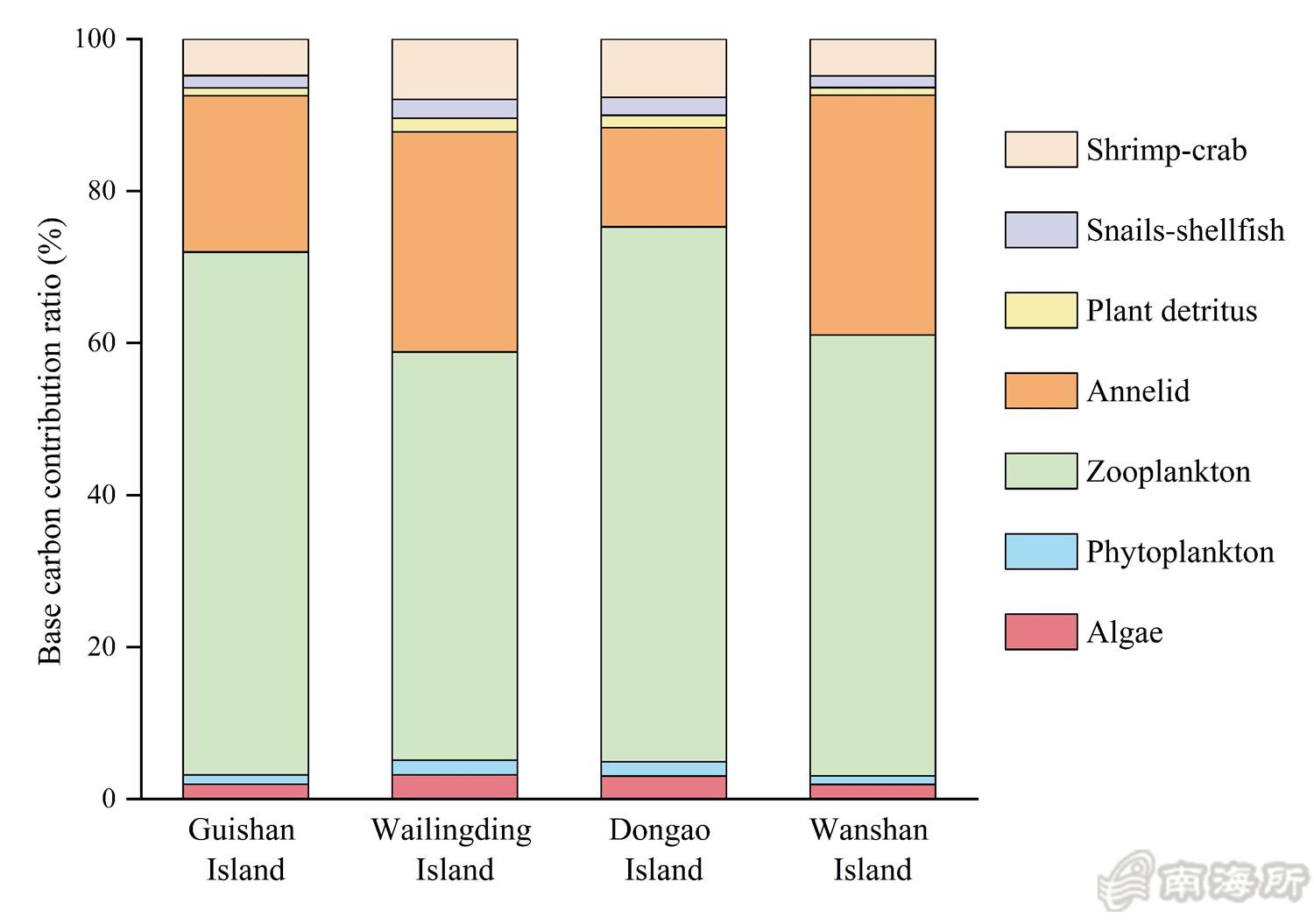 万山群岛四个岛屿鱼类群落的基础碳源贡献百分?/span>
