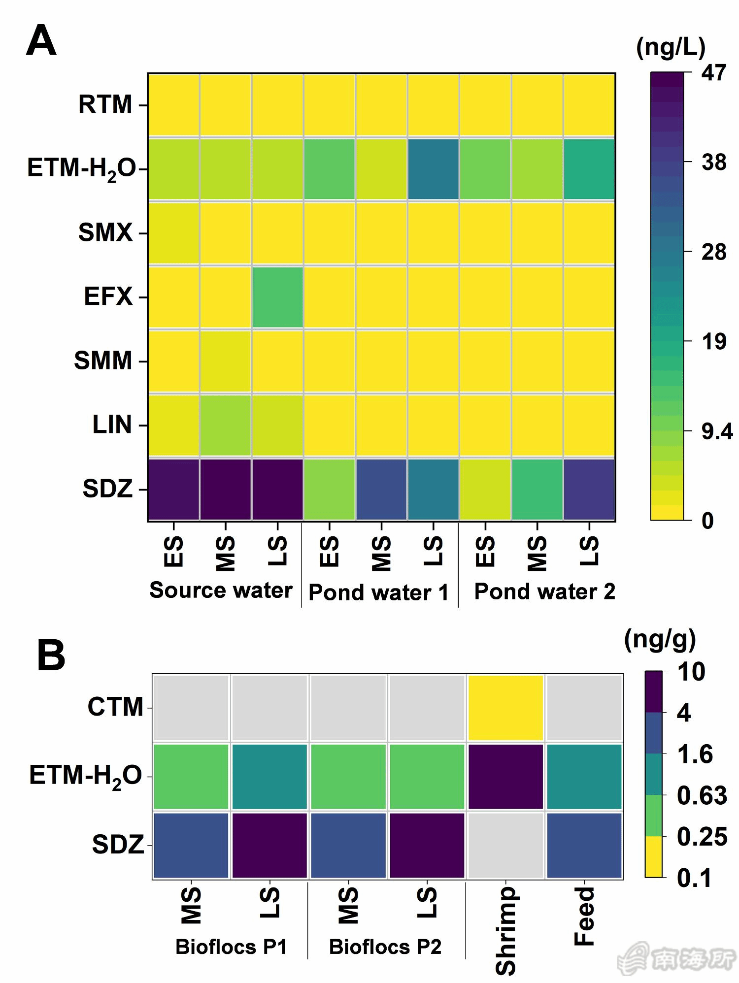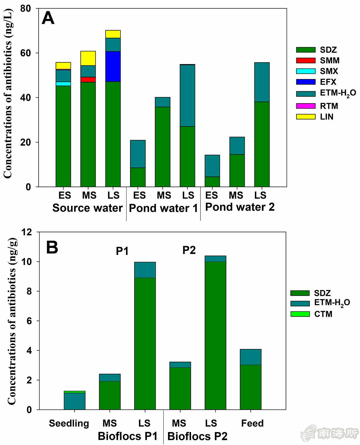 生物絮团零换水养殖系统中养殖水源水、池塘水和生物絮团的抗生素浓度水?/span>