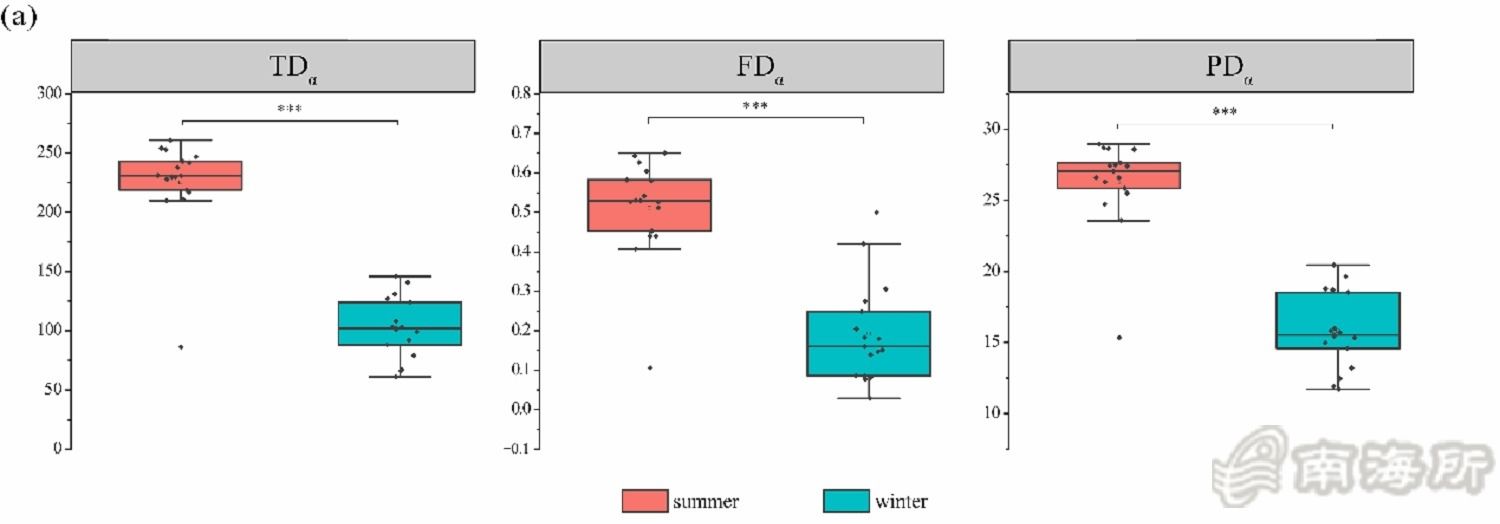 ? 基于eDNA宏条码的南海北部鱼类α多样性(TDα、FDα和PDα)季节差?/span>
