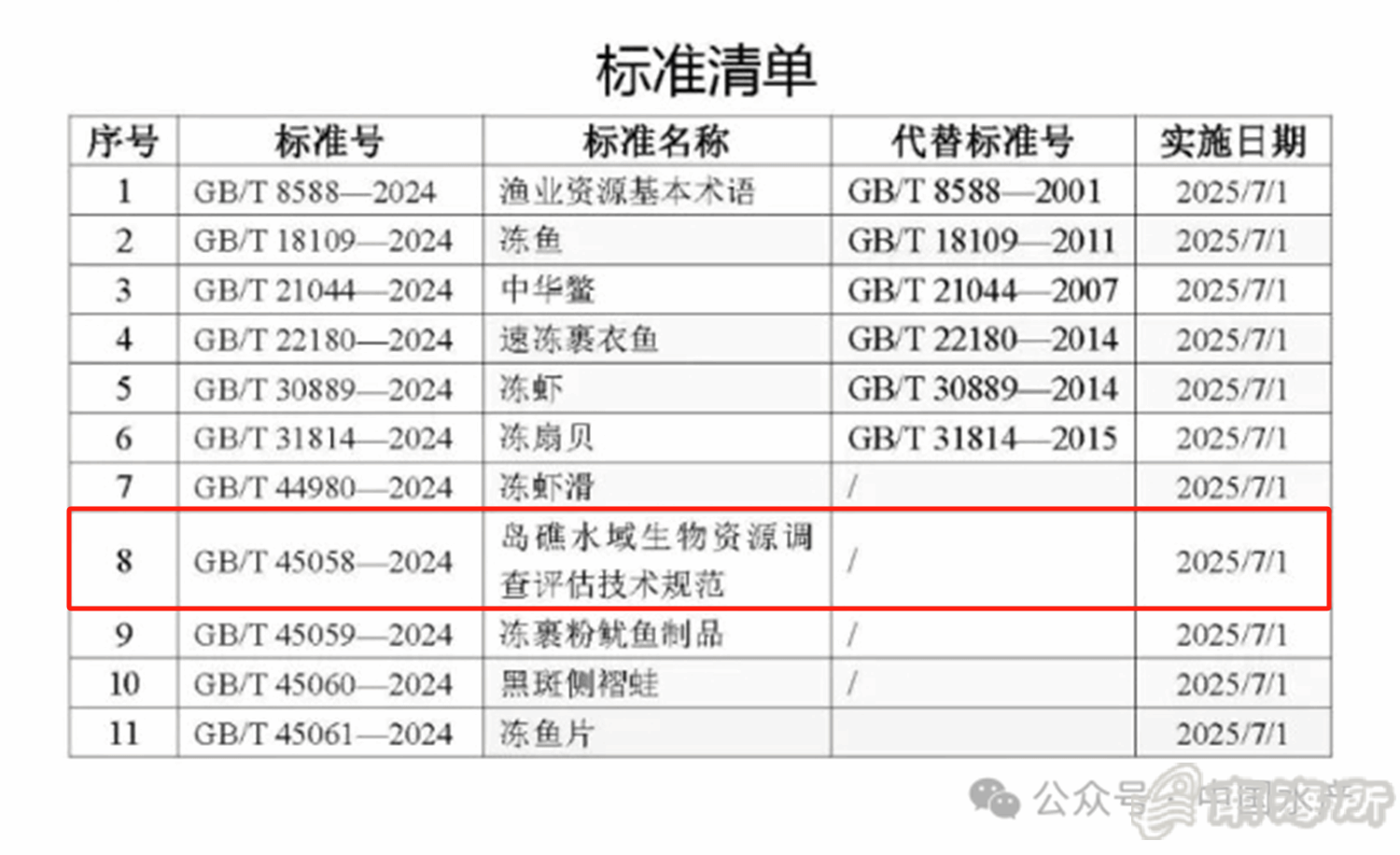 近日,由中国水产科学研究院南海水产研究所牵头制定的国家标准《岛礁水域生物资源调查评估技术规范》(GB/T 45058?024),由国家市场监督管理总局(国家标准化管理委员会)公告(?/span>2024?/span>32号)批准发布,于2025?/span>7?/span>1日起正式实施?/span>