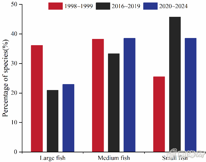 该研究采用延绳钓、手钓、流刺网、潜水捕捞、eDNA等多种调查方法,整合1998-2019年的历史调查数据?020-2024年的现场调查数据,系统分析了美济礁珊瑚礁鱼类群落结构的长期演变特征。截?024年,在美济礁共记录珊瑚礁鱼类353种,隶属14?1?62属。鱼类群落以小型鱼类?3.81%)和肉食性鱼类(74.92%)为主;大型肉食性鱼类物种数比例?998-1999年的水平显著下降,小型肉食性鱼类比例明显增加,且肉食性鱼类整体平均体长与体重显著降低;不同时期之间肉食性鱼类物种的相似性系数较低,均表现为“极不相似”或“不相似”,反映出群落组成显著更替。与2016-2019年相比,2020-2024年期间大型肉食性鱼类以及珊瑚礁依赖程度较高的鮨科等类群的物种占比明显回升;与之相反,小型肉食性鱼类及对活珊瑚依赖程度较低的羊鱼科等类群的占比则显著下降,这种变化趋势显示出美济礁2019年生态修复后鱼类资源正逐步恢复。珊瑚礁鱼类群落长期监测能更加全面揭示区域鱼类演替规律,对推动珊瑚礁生态系统的健康与恢复具有重要指导意义?/p>