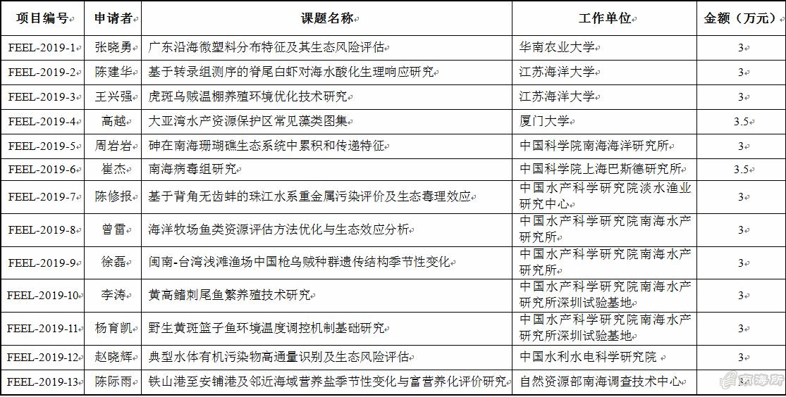 附件:广东省渔业生态环境重点实验室2019年度开放课题拟资助项目一览表