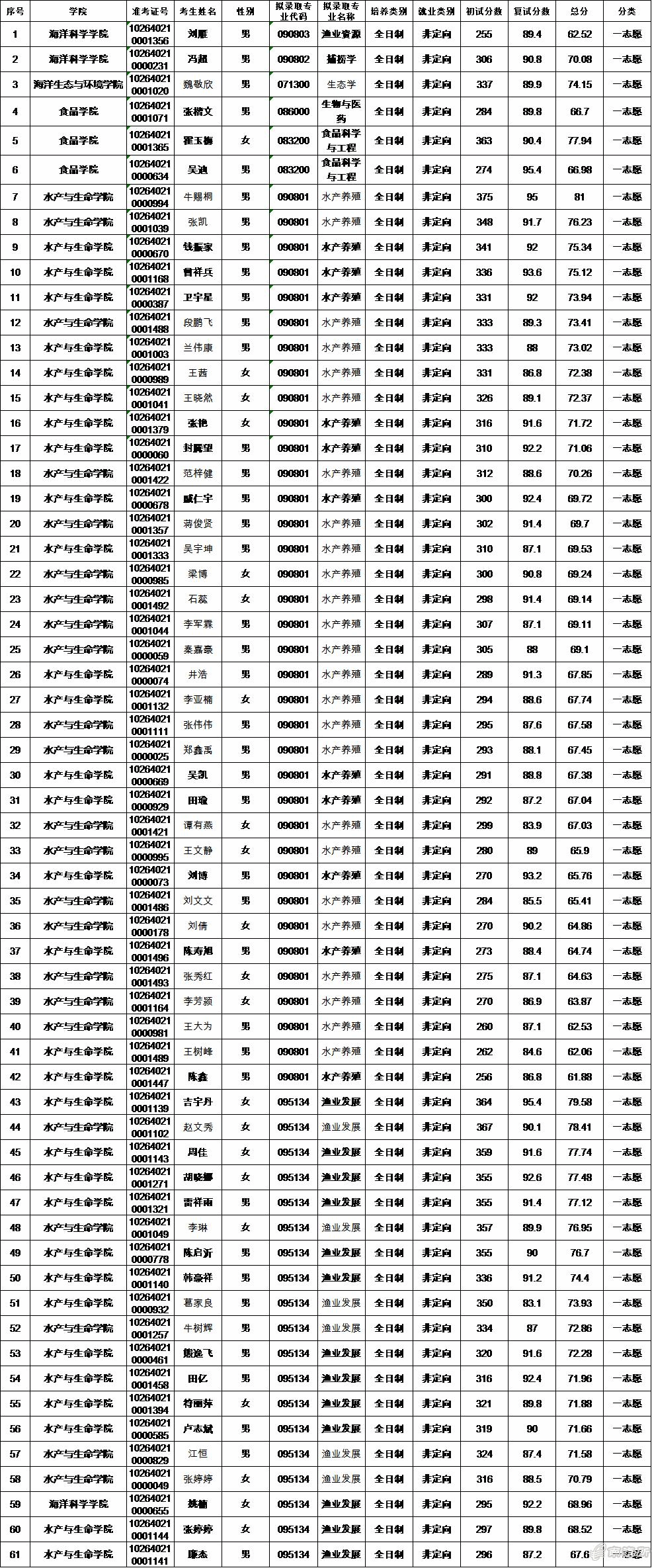 中国水产科学研究院与上海海洋大学联合培养硕士研究生拟录取(一志愿)名单公?/h3>