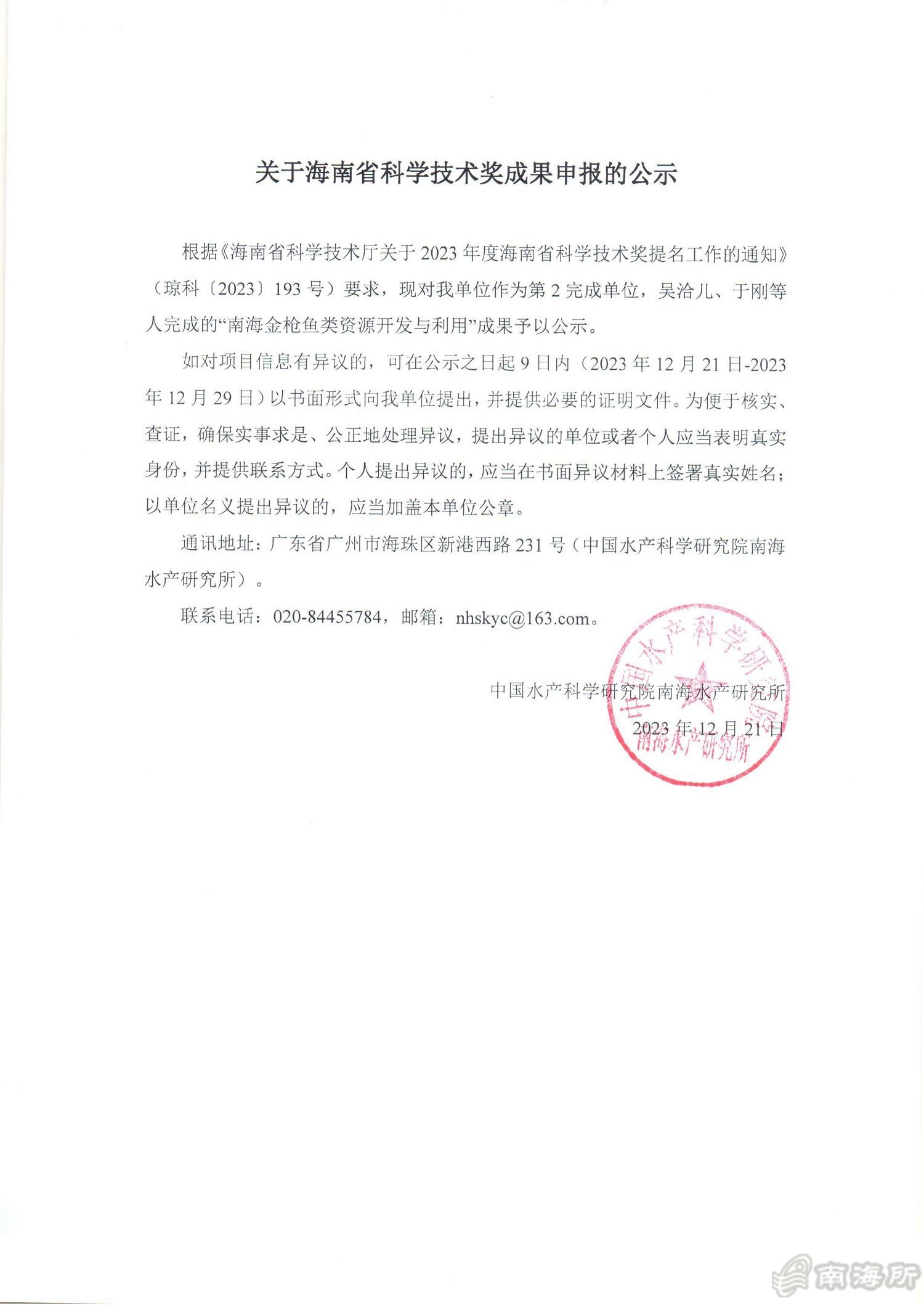 鎾板啓鏃堕棿锛?023-12-21 [鏉ユ簮锛氬崡娴锋按浜х爺绌舵墍 ]