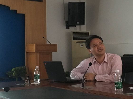 会上,赵俊教授详细介绍了区域性遥感定量模型、叶绿素荧光方法在近岸生态环境监测中的应用、初级生产力模型的算法优化等领域的最新研究进展,引起了与会人员的浓厚兴趣,讨论气氛热烈。会后,赵俊教授还参观了渔业环境研究室和广东省渔业生态环境重点实验室,并就南海及周边海域生态环境遥感领域的合作与南海所专家进行了交流?/P>