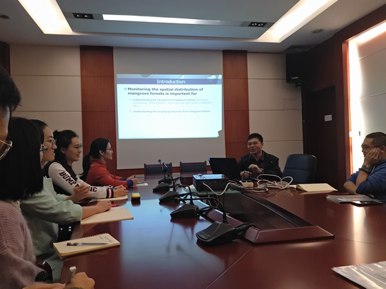 张鸿生博士作了题为“香港和广东省的红树林遥感研究”的学术报告,详细介绍了应用卫星遥感研究香港和广东省红树林分布、生物量、分类等方面最新研究进展,并与南海水产研究所相关专家进行了深入讨论和交流,为双方今后加强红树林渔业遥感领域的科研合作打下了基础?/P>