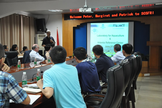 6?日,比利时根特大学生物科学工程学院水产养殖实验室主任Peter Bossier教授、校成果转化中心高级负责人Margiret Drouillon博士、院转化处主任Patrick Dhaese博士和实验室博士后牛宇峰博士等一行,应邀到中国水产科学研究院南海水产研究所访问交流。南海所副所长李来好、成果转化处处长翁雄、科研处副处长文国樑等与Peter Bossier教授一行进行了座谈交流,渔业工程研究室副主任张家松主持学术交流会?/P>