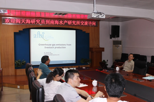 11?3日,英国农业食品和生物科学研究所动物营养研究项目主管兼反刍动物营养研究室主任阎天海博士应邀到中国水产科学研究院南海水产研究所开展学术交流访问?/P>