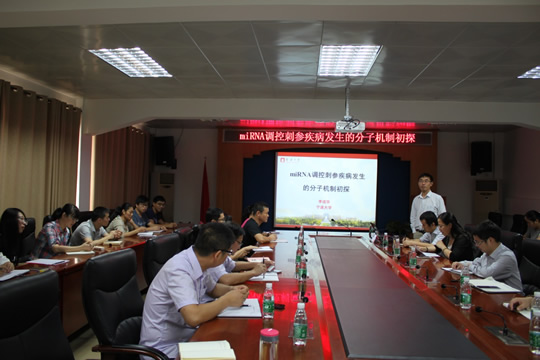会上,李成华做了题为“miRNA调控刺参疾病发生的分子机制”的学术报告,从miRNA相关研究背景、研究思路、研究成果以及未来研究趋势等多方面进行了系统介绍,并对miRNA在调控刺参疾病发生的相关机制进行了分析和预测。李博士的精彩报告和热烈的互动指导,不仅进一步丰富了与会人员对miRNA以及其与疾病发生关系等领域的知识,还为南海所加快推进相关领域科研创新工作提供了有力参考?/P>