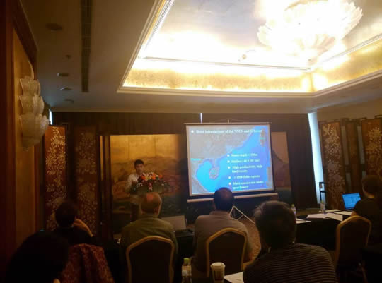 会上,陈作志做了题为" Exploitation and management of fisheries resources in northern South China Sea "的学术报告,介绍了南海所在南海北部近海渔业资源调查、评估和管理等方面的最新研究进展。张魁、张俊分别提交了题为“Stock assessment on the Trichiurus japonicus stock in the East China Sea based on Bayesian state-space modelling”和“In situ target strength measurements of skipjack tuna Katsuwonus pelamis and yellowfin tuna Thunnus albacares in the South China Sea”的论文,并进行了墙报交流?/P>