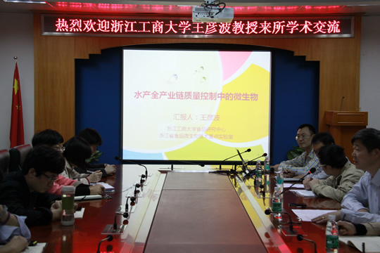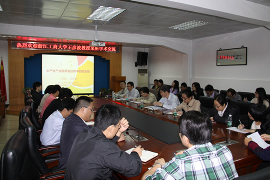 12?日,浙江工商大学王彦波教授应农业部水产品加工重点实验室邀请,到南海水产研究所开展学术交流。南海所副所长李来好,科研处副处长陈胜军,食品工程与质量安全研究室科技人员和研究生等参加了学术交流?/P>
