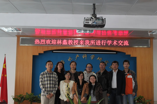 1?1日上午,华中农业大学水产学院“楚天学者”林蠡教授应邀到南海水产研究所进行学术交流,南海所所长江世贵接待了林蠡教授并进行座谈。南海所科研处处长邱丽华主持了学术交流会,渔业生物病害防治研究室副主任冯娟、水产养殖与生物技术研究室副主任喻达辉、渔业工程研究室副主任张家松以及所相关研究室科技人员、联合培养研究生?0余人参加了学术交流?/P>