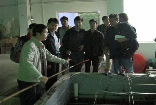 11?8日,美国夏威夷海洋研究所对虾选育技术专家Shaun McAlpine Moss、养殖专家Steve M.Arce、鱼虾营养专家邓东方博士、阳江万事达海洋生物科技有限公司总经理李若峰一?人,到南海水产研究所深圳试验基地参观考察,受到深圳基地主任林黑着,营养学科组牛津博士,农业部斑节对虾遗传育种心副主任黄建华、周发林博士等的热情接待?/P>