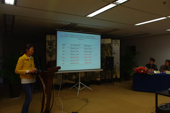 在甲壳动物营养与饲料和健康养殖专题研讨会上,南海所科技人员积极参与了研讨。王芸、张加润、夏冬梅、陈义方等分别作了题为《绿原酸对凡纳滨对虾抗低盐度和亚硝酸盐联合胁迫的影响》、《不同品牌饲料对斑节对虾生长及水质的影响》、《海洋红酵母对南美白对虾生长及免疫指标的影响》和《不同规格凡纳滨对虾蛋氨酸需求量的研究》的学术报告,与各位专家、学者进行了广泛的交流和探讨?/P>