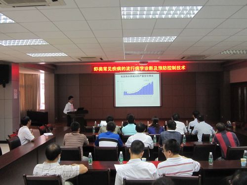 2010??7日,应南海水产研究所对虾健康养殖研究团队的邀请,黄海水产研究所黄倢研究员带领科研团队到南海所进行学术访问与交流?BR> 会议由国家虾产业技术体系对虾健康养殖功能研究室主任李卓佳研究员主持。南海所李来好副所长对黄倢研究员一行的到访表示热烈欢迎并参加了会议?BR> 会上,黄倢研究员作了题为“虾类常见疾病病原、病理、流行病学、诊断及预防”学术报告,从虾类常见疾病的病原、样品采集、诊断方法、检测技术、健康管理等方面进行了分析和探讨?BR> 报告内容丰富,信息量大,深入浅出,与会的40余名科研人员、技术推广服务人员及研究生就2010年对虾养殖情况、常见病害流行病学诊断与预防控制技术展开讨论,交流活跃,气氛热烈?BR>
