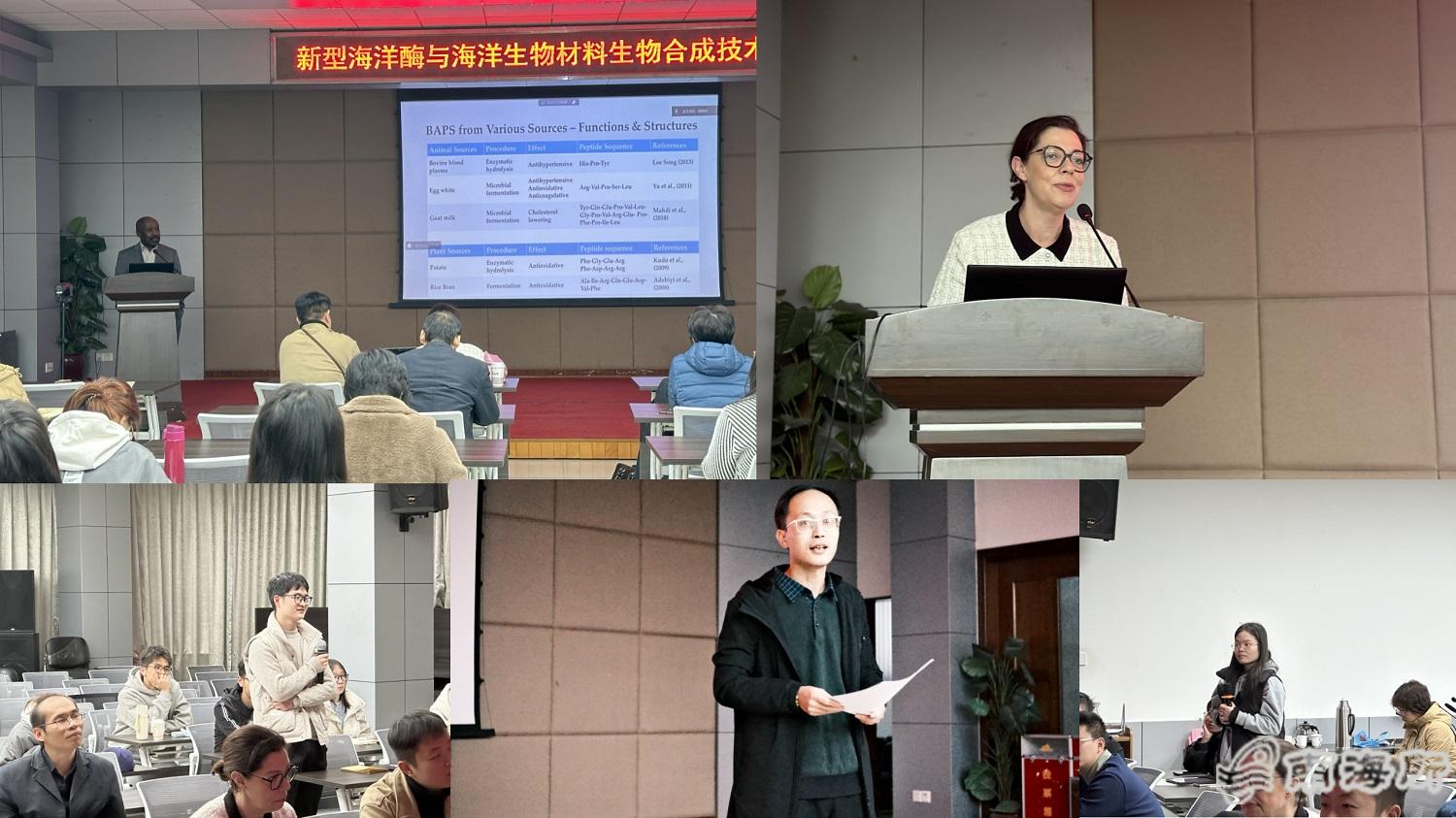 会上,Benjamin K.Simpson教授作了题为《Proteins and Bioactive Peptides》的学术报告,围绕蛋白质和生物活性肽两个主题,详细阐述了蛋白质的来源、价值以及摄入对人体健康的影响,以及生物活性肽的制备、活性评价、鉴定、构效关系等,同时对海洋生物蛋白和活性肽的研究提出了思考与展望。Nardin Corinne教授作了题为《Antimicrobial materials free of antibiotics and of other biocides》的学术报告,主要从生物传感器的制备应用和药物递送体系构建两方面,详细介绍了DNA生物传感器的制备方法及检测应用场景,为水产品检测提出了新思路。随后,与会人员与两位教授就各自专业领域科研工作进行了热烈的交流研讨?/p>