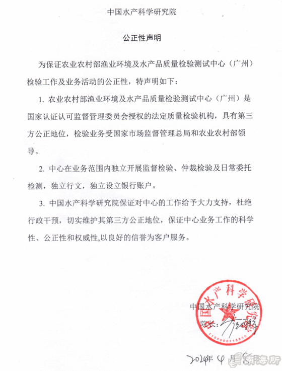 农业农村部渔业环境及水产品质量检验测试中心(广州?/h3>
