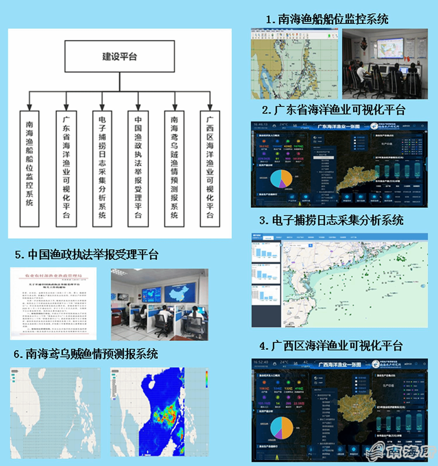 1. 负责南沙渔业生产与渔船船位监控,保障南沙渔业生产安全,重点开发南海外海渔情预测报系统,指导渔民生产作业;
