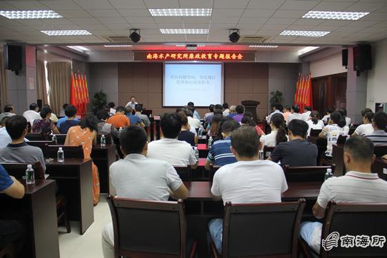8?5日上午,中国水产科学研究院南海水产研究所按照2018年纪律教育学习月活动部署,举办了廉政教育专题报告会。院党组成员、纪检组组长于书洲同志应邀作了题为“突出问题导向,切实履行监督执纪问责职责”的廉政党课。南海所所长江世贵同志主持报告会,院监察与审计处副处长易智慧、所党政领导班子成员?00多名党员、干部职工、离退休党支部书记代表等参加了党课学习?/p>