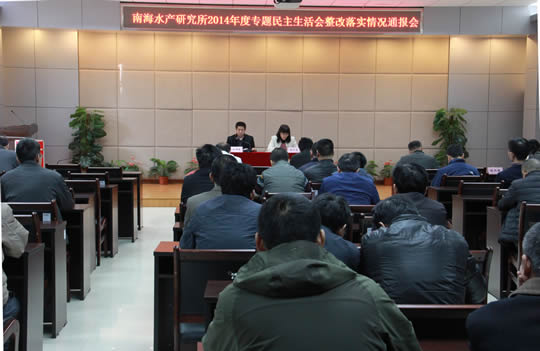 12?8日,中国水产科学研究院南海水产研究所党委召开2014年度所级领导干部民主生活会整改落实情况通报会。所长江世贵主持会议,所党委书记徐竹青通报?014年度所级领导干部专题民主生活会以来各项工作整改落实情况。副所长杨北胜、李纯厚,党委副书记陈水胜和中层干部、副高以上专业技术职称人员、离退休党支部书记等参加了会议?/p>