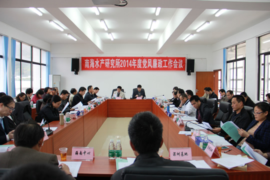 2?7日,中国水产科学研究院南海水产研究所召开2014年度党风廉政建设工作会议。所领导、中层干部、学科组长和工青妇组织负责人以及所办经济实体负责人等参加了会议。会议由所党委书记刘新中主持?/p>