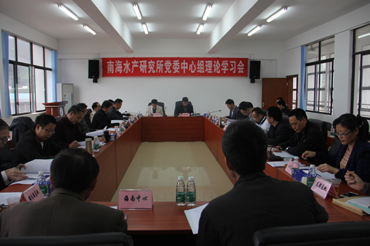 2?7日下午,中国水产科学研究院南海水产研究所召开党委中心组理论学?014年第1次(扩大)会议,传达学习2014年中央一号文件精神、全国农业工作会议、全国渔业渔政工作电视电话会议、中国水产科学研究院2014年度工作会议精神以及《党政领导干部选拔任用工作条例》。理论学习会由所党委书记刘新中主持,所党委委员、各部门主要负责人、在职党支部书记等参加了学习?/p>