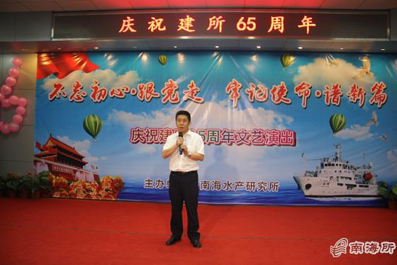 江世贵所长致辞,他指出,南海所65年发展,始终与祖国共命运、与时代同步伐;一代又一代南海所人无私奉献、薪火相传、砥砺前行,取得了一系列创造性、奠基性的科研成果,造就了以费鸿年、冯顺楼、钟麟等老一辈科学家为代表的一大批杰出的渔业科学家,为祖国的繁荣和渔业发展谱写了绚丽的篇章。他希望,全所上下要以纪念建所65周年为新的起点,在习近平新时代中国特色社会主义思想指引下,勇担国家赋予的职责和使命,围绕“四个聚焦”,突出“三个走出、三个面向”,大力推进渔业科技创新工作,为实现“两个一百年”奋斗目标和我国绿色渔业发展做出新的更大贡献?/p>