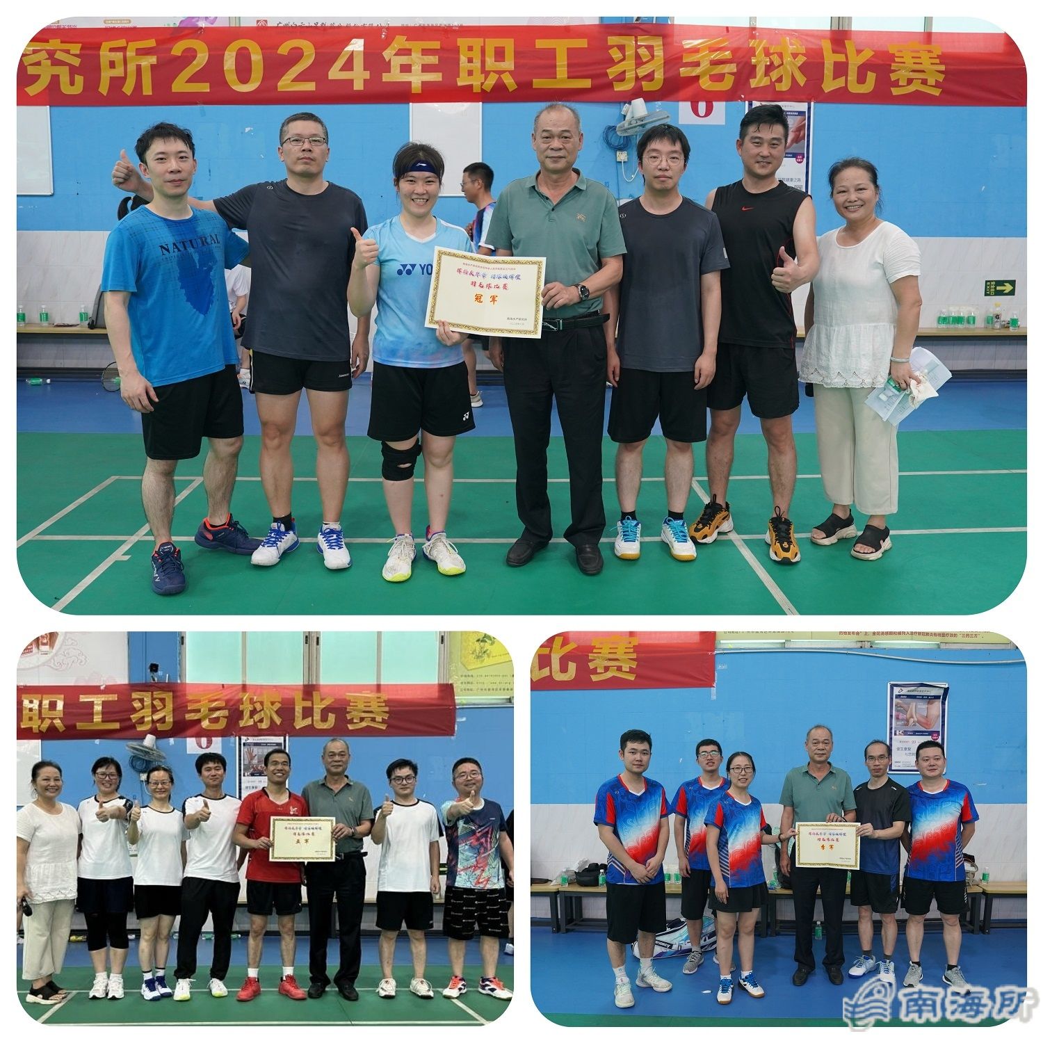 2024??6日,中国水产科学研究院南海水产研究所庆祝建国75周年系列活动?024年职工羽毛球比赛圆满落下帷幕。本次羽毛球比赛由所工会、妇委和团委共同组织,以“挥拍庆华章 羽球映辉煌”为主题,旨在发扬“友谊第一,比赛第二”的运动精神,加强职工凝聚力和向心力,展现和谐向上的南海所精神风貌。比赛设有男子单打、男子双打和男女混合双打3个项目,?支队?0余名队员参赛。党委书记程洁作赛前动员讲话,副所长、工会主席吴洽儿应邀出席比赛开幕式,并在比赛结束后为获奖队伍颁奖?/span>