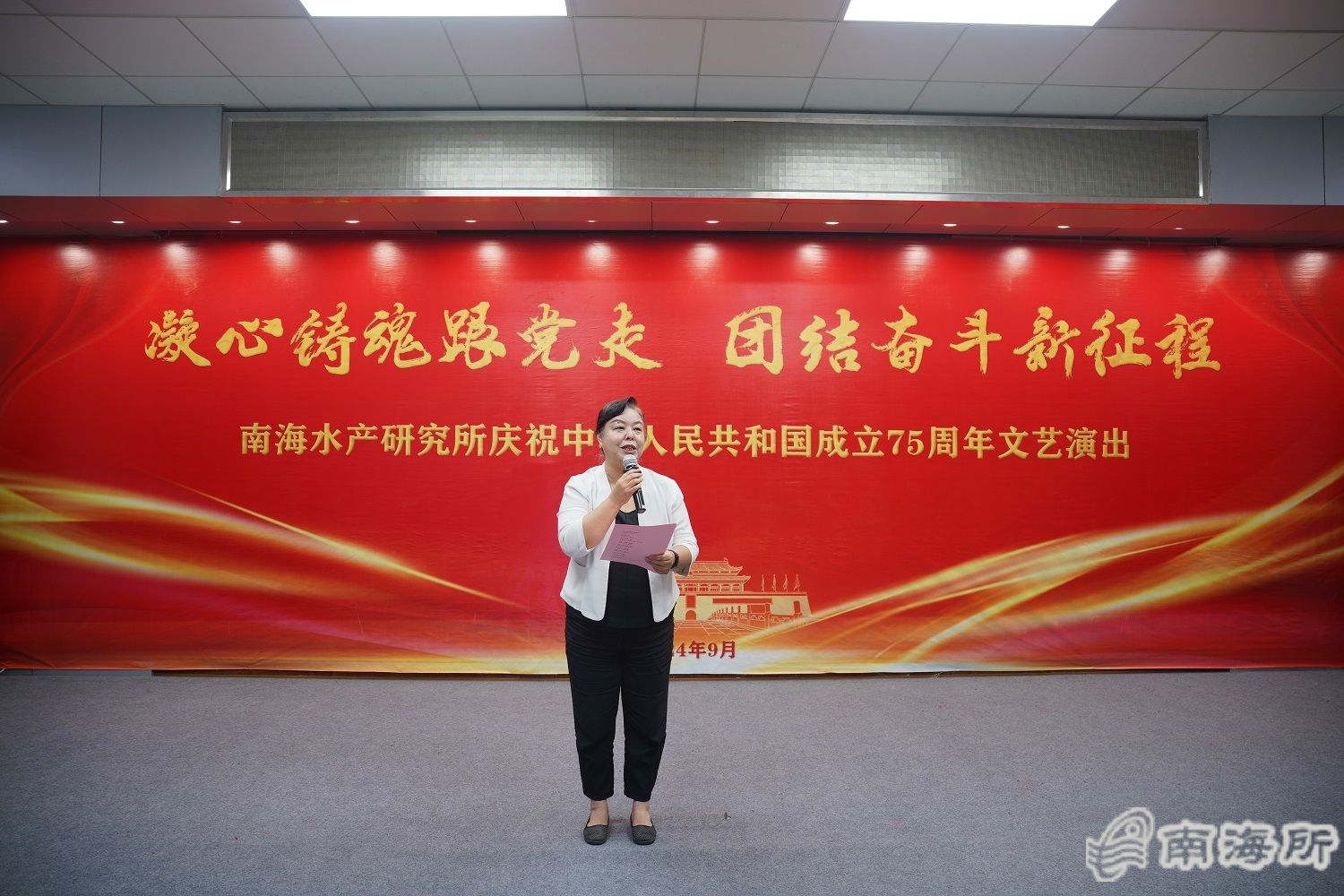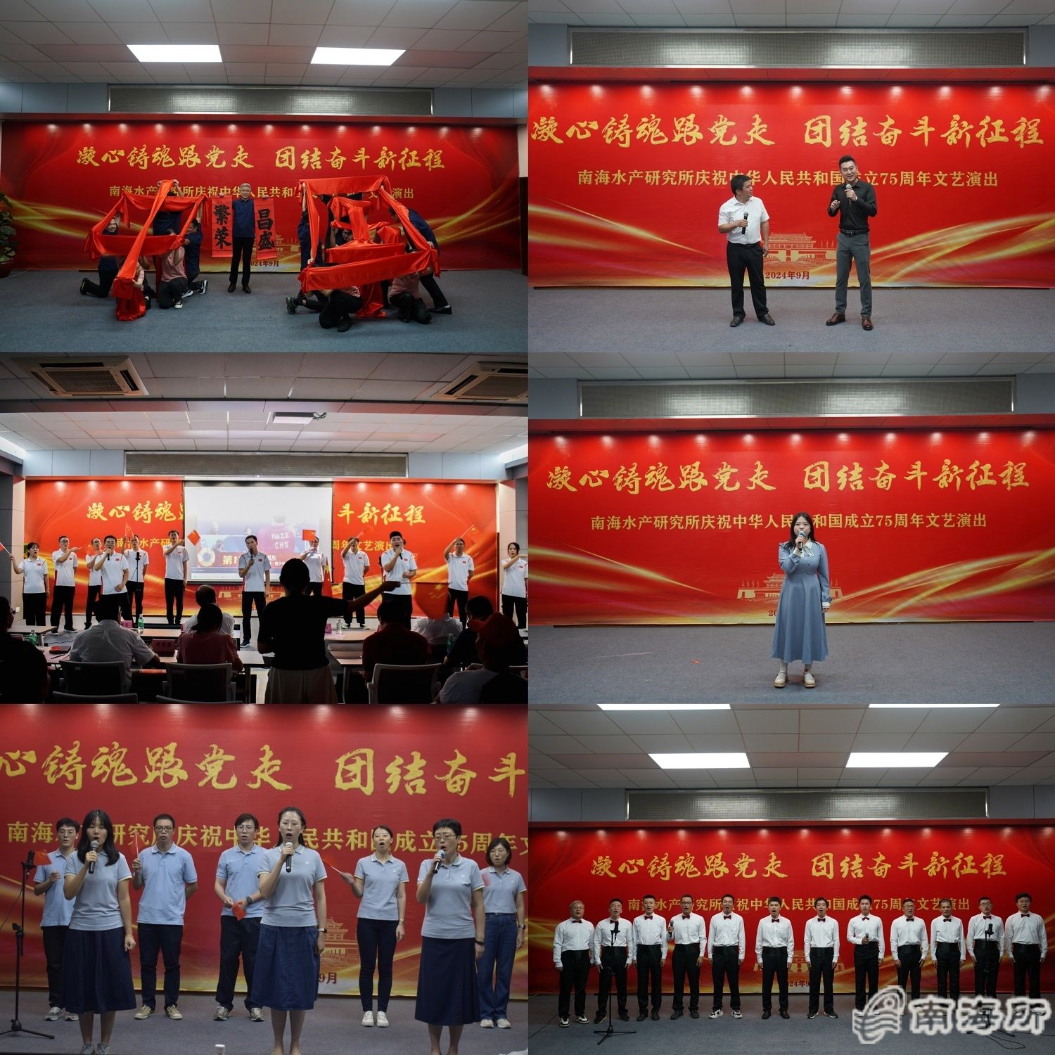 为迎接伟大祖?/span>75周年华诞,营造喜庆祥和的节日氛围,激发全所干部职工爱国情怀?/span>2024?/span>9?/span>29日下午,中国水产科学研究院南海水产研究所举办了主题为“凝心铸魂跟党走,团结奋进新征程”的庆祝新中国成?/span>75周年文艺演出活动?/span>