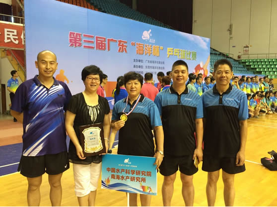 7?-9日,由广东省海洋与渔业局主办、东莞市海洋与渔业局承办的第三届广东“海洋杯”乒乓球比赛在东莞市体育馆举行。中国水产科学研究院南海水产研究所组队参赛,获比赛组织奖,王巧玲同志获女子单打?名?/p>