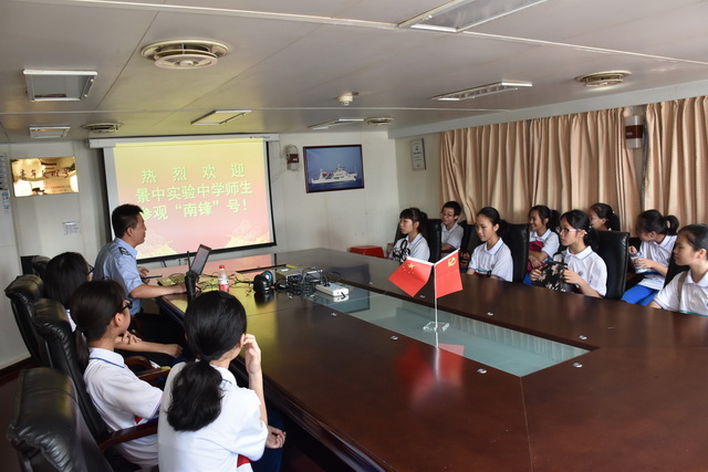 同学们分批登船、有序参观,通过参观驾驶台、海洋理化实验室、海洋生物实验室、机舱轮机组、渔业船舶捕捞专用设备和船员生活区等,了解了这艘亚洲目前最大的渔业调查船的建造历史、功能配置;通过聆听船长于文明的集中讲解,了解了南海所近年来主要科考活动和取得的重要科研成果,尤其分享了“南锋”号远赴曾母暗沙宣示主权、从印尼海警跟踪下解救中国渔船的经历,感到由衷的自豪和骄傲。他们兴趣浓厚、勤学好问,积极与所团委青年交流、向船员们请教,了解了更多的船舶、渔业等方面的知识,进一步提高了对海洋的认识和维护国家海洋权益的意识?/p>