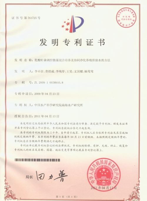 日前,中国水产科学研究院南海水产研究所科研人员李卓佳、曹煜成、李纯厚等人完成的“乳酸杆菌调控微藻混合培养及协同净化养殖排放水的方法”获国家发明专利授权(专利号 ZL2009 1 0038910.8),在养殖环境菌藻调控技术研究方面取得重要突破?BR> 该方法在微藻培养过程添加乳酸杆菌进行调控,使各种微藻生长均衡,稳定性好,菌藻在培养过程中协同净化养殖排放水,达到去除氮磷的目的?BR> 养殖生产过程中,通过不定期投入乳酸杆菌,可有效保持藻相的稳定均衡,调节养殖池塘环境生态系统?