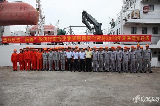 8?7日上午,中国水产科学研究院南海水产研究所“南锋”号调查船和“中科渔301”号(原“南?”号)调查船同时从广州启航,前往南海中南部海域执行农业农村部财政项目“南海生物资源调查与评估”(简称“南锋专项Ⅱ期”)2018年夏季航次调查任务。南海所所长江世贵,副所长杨北胜、李纯厚,党委副书记陈水胜和相关处室负责同志、职工代表等到新洲码头欢送全体出海队员?/p>