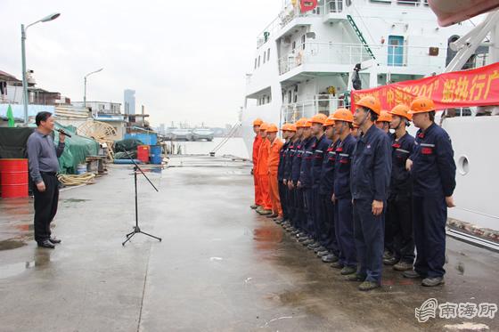 在欢送仪式上,杨北胜副所长强调了执行此次海上调查任务的重要意?a name="OLE_LINK1">,要求全体队员要牢固树立“安全第一”的思想,严格按照要求规范操作,确保生命财产安全;要继承优良传统,发扬好“南锋”精神,齐心协力,确保顺利完成各项任务,早日凯旋?/p>