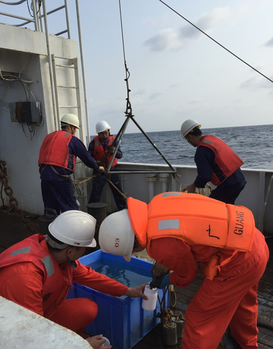 此航次是执行农业部财政专项“南海渔业资源调查与评估?016年第1航次(春季)调查任务,自3?2日启航,4?0日返航,历时30天,航行4200海里;调查采用“南锋”号船和一灯光罩网渔船联合作业的方式,完成了南海“三沙”海域重点渔场和有关岛礁潟湖区的渔业调查及资源探捕验证,包括8个断?3个站位的渔业资源、渔场环境要素、渔场生物要素、捕捞技术、岛礁生态系统、海洋生物遗传多样性和生物体质量样品采集等方面内容,取得了大量极具价值的数据和资料?/p>