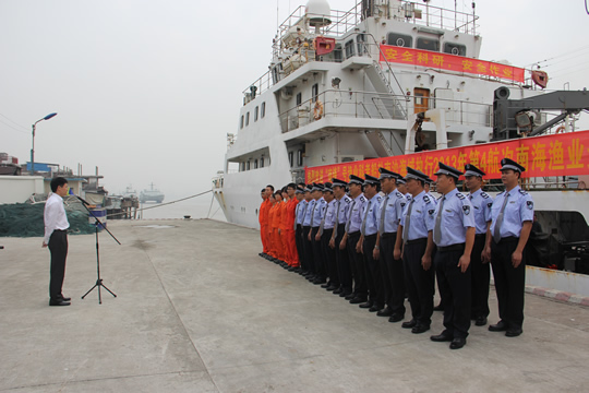 11?日上午,中国水产科学研究院南海水产研究所“南锋”号渔业科考船启航,前往南沙海域执行“南海渔业资源调查与评估”项?013年第4航次调查任务。南海所党政领导班子和各部门负责人等30多人前往新洲码头欢送“南锋”号全体队员?/p>