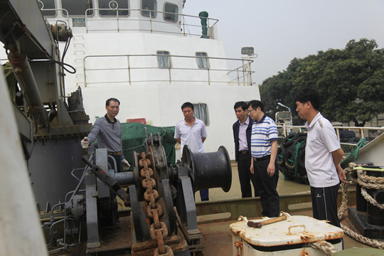 2014??日,广东省渔业船舶检验局对南海水产研究所“南锋”号海洋渔业科考船进行了年度及换证检验。三名验船师到船听取了“南锋”号一年来的运转情况介绍,并按照检验规则规程,分专业对船体、轮机、通导、电气的技术状况、救生消防设备、防污染设备进行了详细检验。经验船师严格的审核检验,“南锋”船各项技术指标全部达到合格标准?/p>