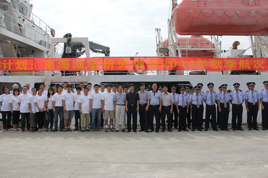 在简朴的欢送仪式上,周朦对南海所给予的支持以及全体人员的努力表示感谢,号召大家齐心协力完成好此次海上调查任务。刘新中代表南海所讲话,他首先对全体出海人员表示慰问,针对此次海上调查参加单位多、科技人员多、调查时间短、科研任务重、海上风浪大等实际情况,着重强调了团结协作和海上安全,并希望全体科研人员和船员作为一个整体和团队,加强沟通,密切合作,严格遵守和执行船舶的有关规定,按照既定调查工作方案顺利、圆满、安全地完成各项任务?/p>