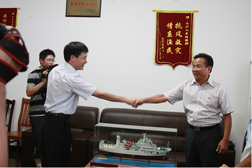 9?9日下午,远赴南沙群岛海域开展渔业资源及生态环境调查的“南锋”号科考船,在返航时抵达三沙市永兴岛,南海水产研究所党委书记、本次科考总指挥刘新中带队登岛访问三沙市。三沙市市委书记、市长肖杰会见了刘新中书记一行,并进行了座谈,就开展三沙渔业资源开发与养护合作等有关事宜交换了意见?/p>